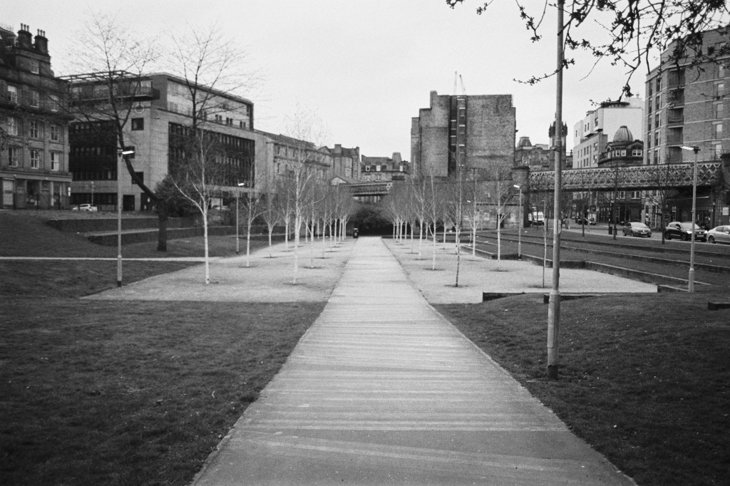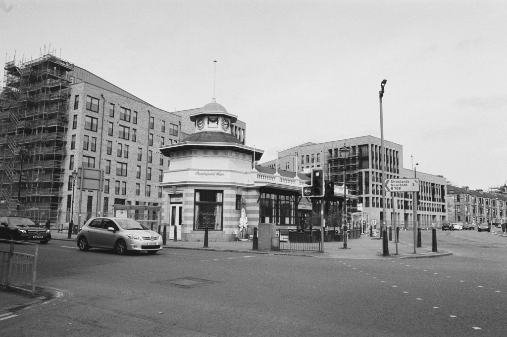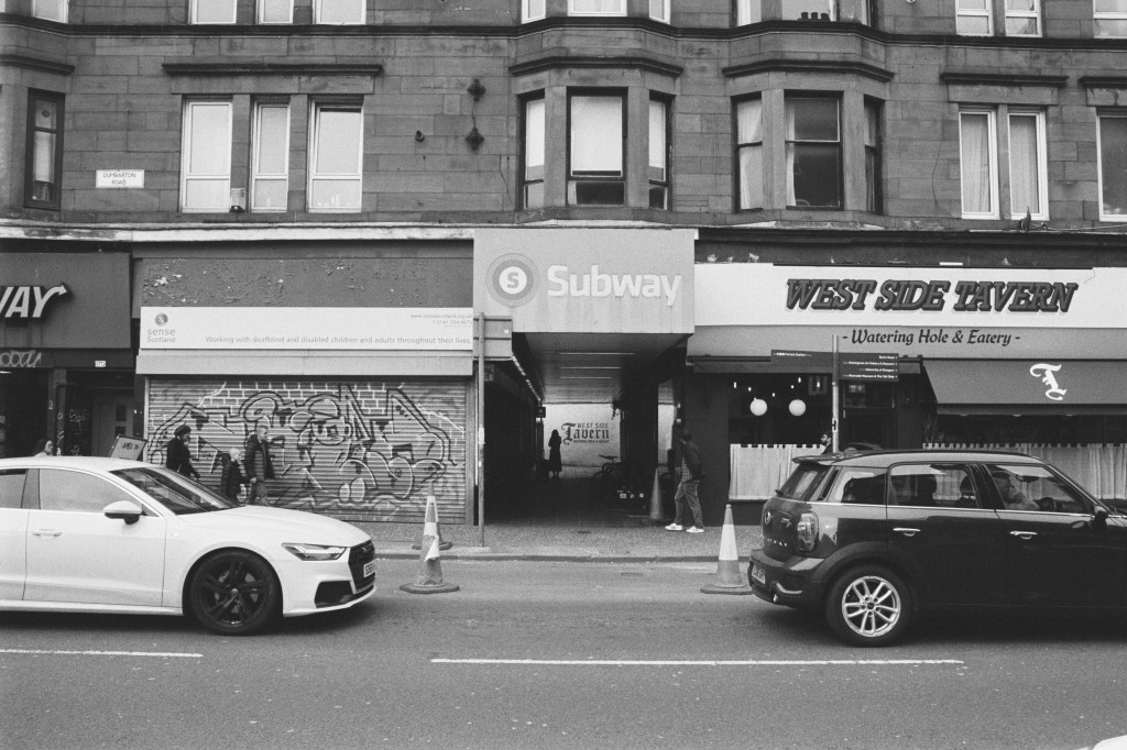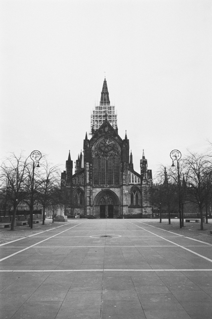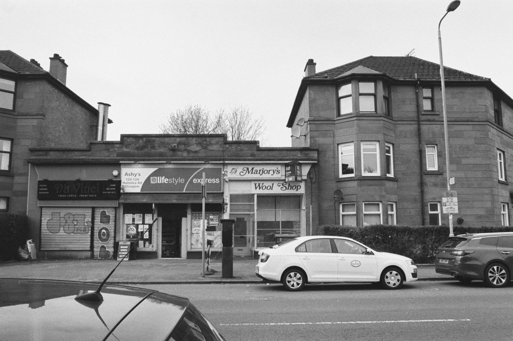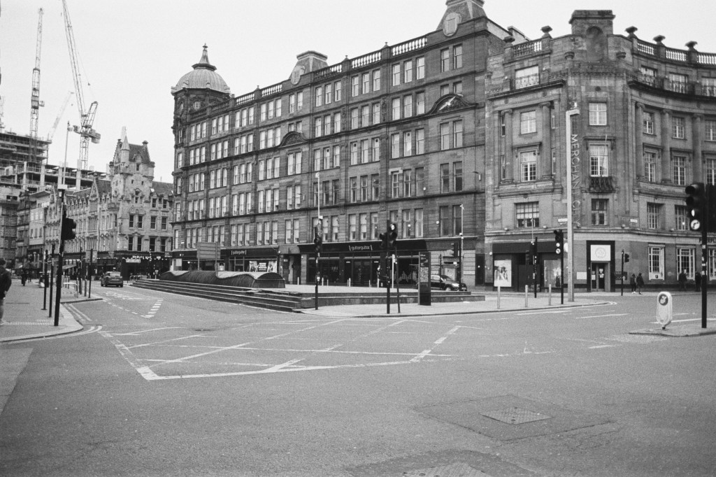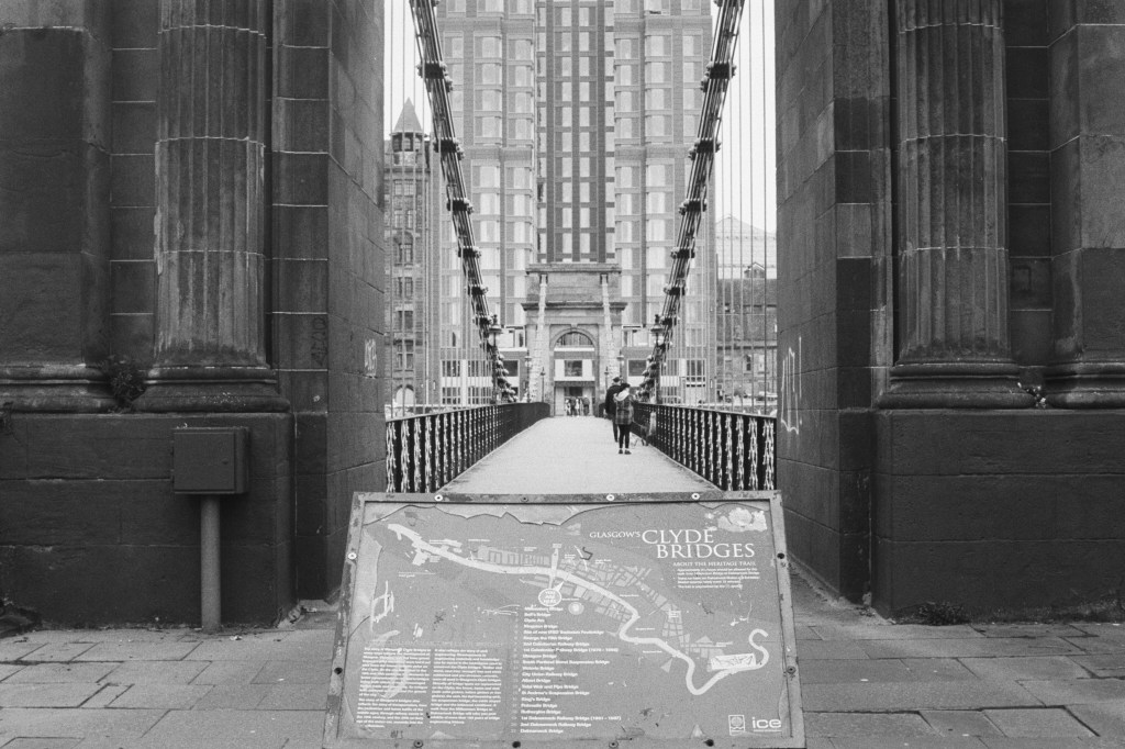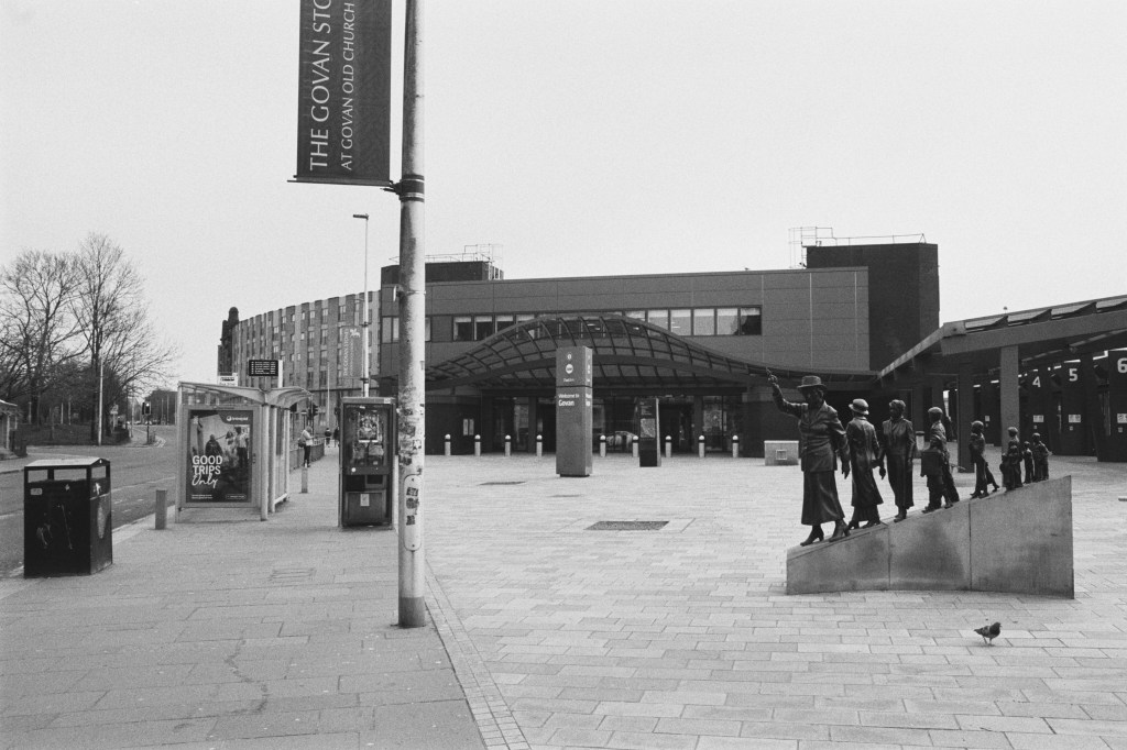 On Easter Sunday 2023, I set myself a little challenge. I would zip about Glasgow with my trusty (if occasionally temperamental) Olympus OM-20 and try and photograph 2 spools’ worth of images during the daylight hours to use as an example of the images I would be capturing during my ‘Scenes From Strathclyde‘ Masters Project.