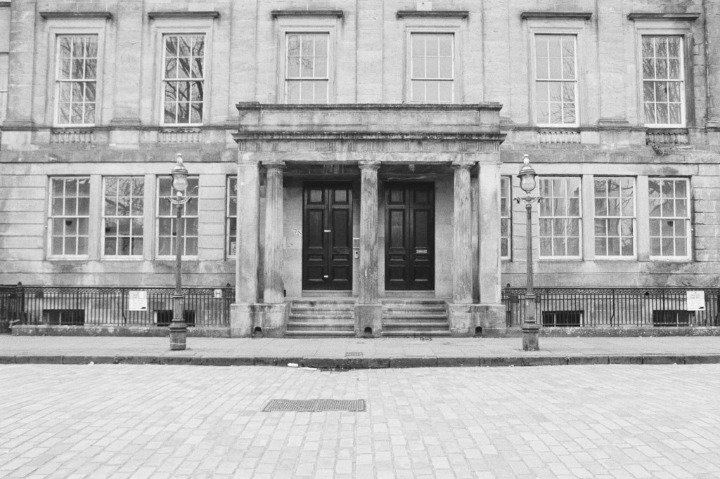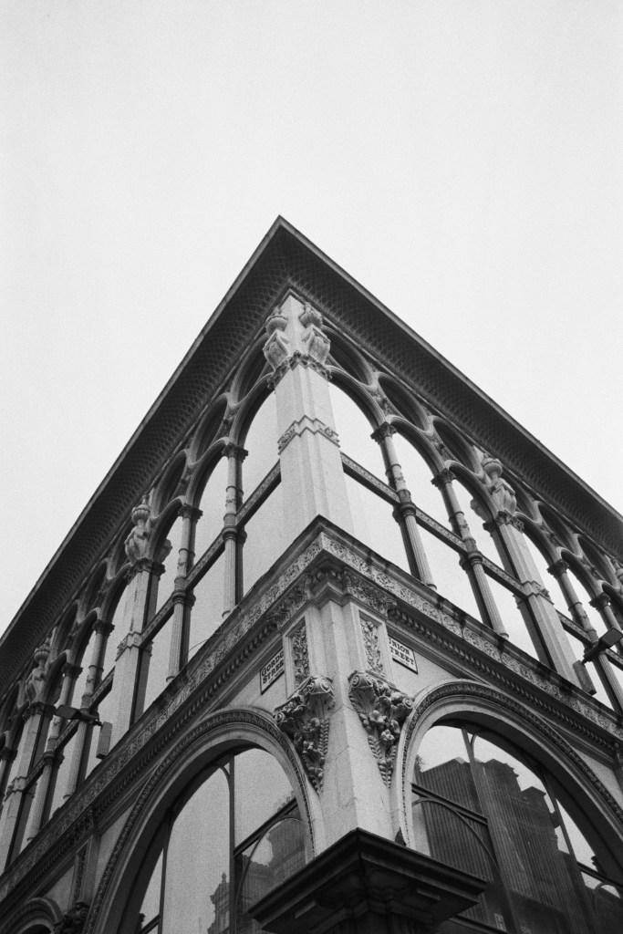 I should have stood a little more to the left to be precisely in the middle of the entranceway’s central arch to get a perfectly centred shot. The Olympus was having a tantrum and I had to move for a group of American tourists. I almost got hit by a tram in Edinburgh doing the same once.