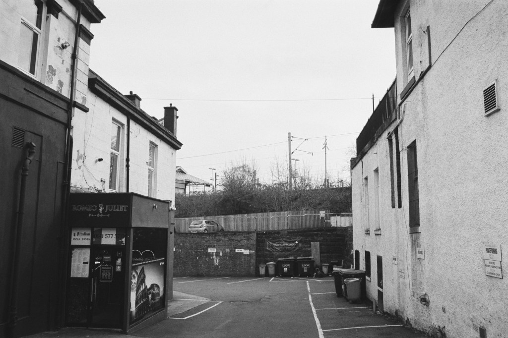 Peering down an alleyway by the ‘Romeo & Juliet’ restaurant towards Cathcart Station