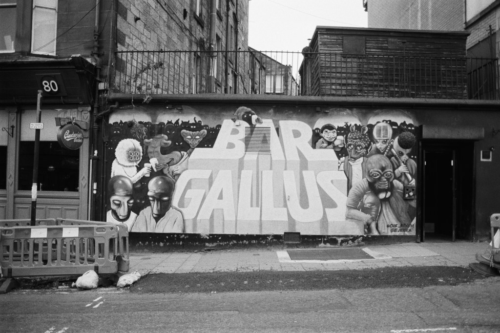 Put my life on the line to snap the Gallus mural due to roadworks closing off the path opposite the bar. Later had a pit stop here en-route back to the city centre. Nice pour of Tennent’s here.